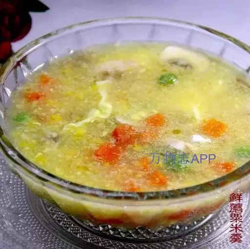 3. 将玉米糊与果脯汁,果脯肉,柠檬汁混合在一起,装入碗中摊凉后送进冰箱。