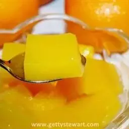 3. 将橙汁、砂糖放入锅内,用小火煮至稠厚即可,待冷后慢慢倒入蛋黄汁拌匀,倒入抹有油的布丁模具内, 放入蒸锅蒸熟,待冷后取出即可食用。