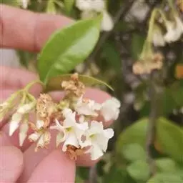 锡兰水梅 Wrightia antidysenterica,是夹竹桃科倒吊笔属的常绿灌木。产于东南亚、斯里兰卡(锡兰)。在泰国,人们会采摘它的花来做成花串挂车上或者拜佛。