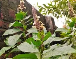 全草长20-40cm。茎细而稍硬,有分枝,青绿色,直径约2mm,表面有纵向纹理,近基部的数节其上着生细须根,节稍膨大,质脆易折断,断面黄白色,髓部针孔状。叶对生,青绿色,完整者展平后呈狭披针形,长3-5cm,宽1-2cm,全缘,具短叶柄。穗状花序短,顶生或腋生,压扁,形似蟑螂,青绿色。蒴果卵形或长圆形,长约3mm。每室有种子2颗。气微、味淡。以叶多、带花穗,青绿色者为佳。