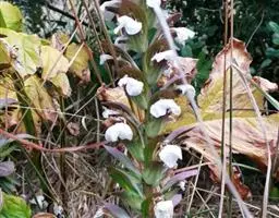 一年生细弱草本,高达50cm。全株被毛。茎上部多分枝,茎下部斜卧,节部稍膨大,带紫红色。叶对生;叶柄长3-4mm;叶片椭圆状长圆形至长圆状披针形,长1.5-5cm,先端尖,基部楔形,全缘。穗状花序顶生或腋生,长1-2.5cm,粗约6mm,花偏生于一侧;苞片2型,有花的苞片倒卵状椭圆形,长约3mm,背面短柔毛,具宽膜质边缘和睫毛,无花的苞片椭圆状披针形,作蓖齿状排列;小苞片2;花白色带淡紫色;萼5裂,裂片狭披针形;花冠长约4.5mm,二唇形,上唇先端凹,下唇3浅裂;雄蕊2,花药2室,药室不等高,较低的1室具小距;子房有胚珠4。蒴果卵形或长圆形,长约3mm,开裂时胎座自蒴底弹起。种子4颗,扁圆形,黑褐色。花期11月-翌年春季。