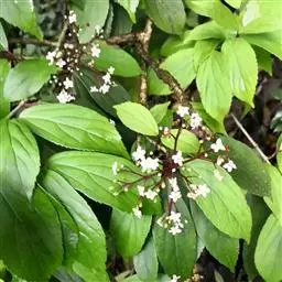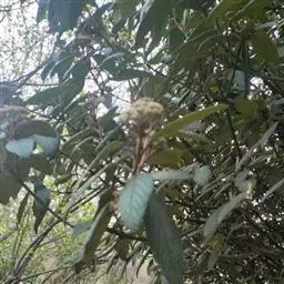 皱叶荚蒾是五福花科荚蒾属的小乔木植物。植株高达4米;叶柄及花序均被由黄白色、黄褐色或红褐色簇状毛组成的厚绒毛;小枝粗壮,稍有棱角;叶革质,卵状矩圆形至卵状披针形;聚伞花序稠密,总花梗粗,四角状,花冠呈现白色,雄蕊高出花冠;果实红色,后变黑色,宽椭圆形,无毛;花期为4-5月;果熟期为9-10月。皱叶荚蒾原产于中国,分布于陕西、湖北、四川及贵州等地。生长于山坡林下或灌丛中,海拔800-2400米。其性喜好阳光,耐半阴,喜温暖,有一定的耐寒性,喜湿润,不耐涝,耐中度盐碱,但在深厚肥沃、排水良好的中性或微酸性沙质土壤中生长更好,耐修剪,生长缓慢。其一般的繁殖方式为播种和扦插繁殖。皱叶荚蒾味苦,性凉。具有清热解毒、凉血止血的功效。可用于湿热痢疾、痈疽疮疖、咳血、吐血、便血、跌打损伤等疾病。皱叶荚蒾给人以郁郁葱葱的景象,全年观叶、春季观花