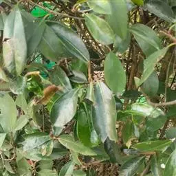 叶亚革质,倒卵状矩圆形至矩圆形或狭矩圆形,长6~10 (~13) 厘米,顶端尖至渐尖,基部楔形至圆形,边缘除自一叶片的中部或中部以下处全缘外有浅的锐锯齿,齿常具硬凸头,两面无毛或下面脉上散生少数簇状毛,侧脉5~7对,至少部分直达齿端,连同中脉下面凸起,脉腋有趾蹼状小孔和少数集聚簇状毛;叶柄长1~2厘米。