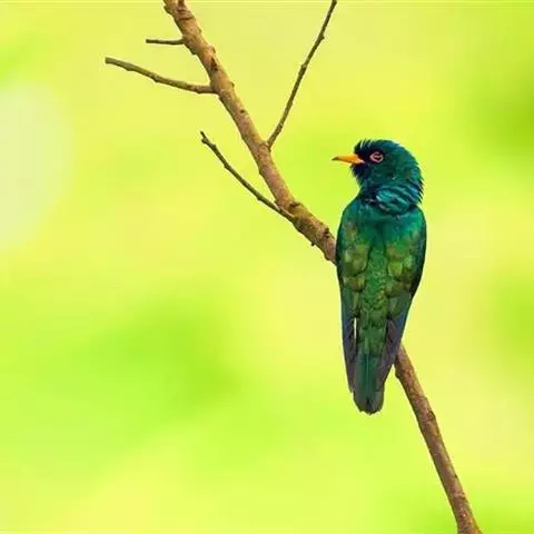 绿嘴地鹃:体形似小鸦鹃,但羽色大致绿灰;嘴绿色,头侧眼的周围有一裸区;后爪弯曲。虹膜赤红色,…