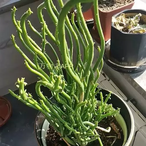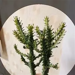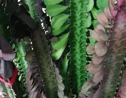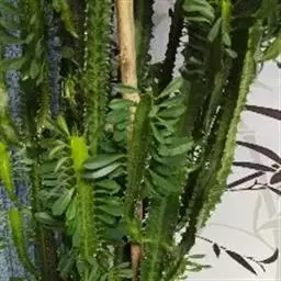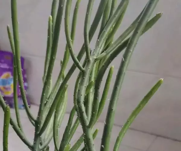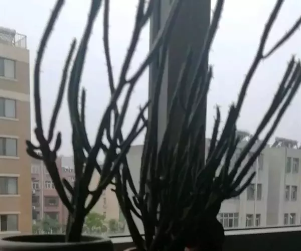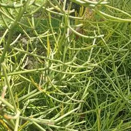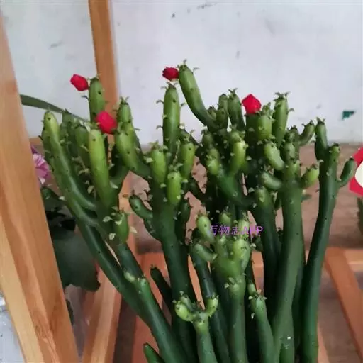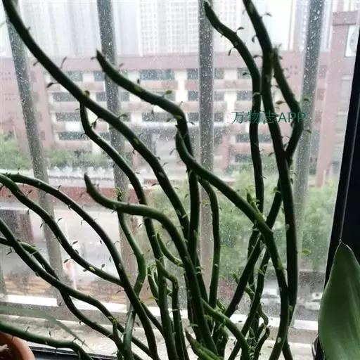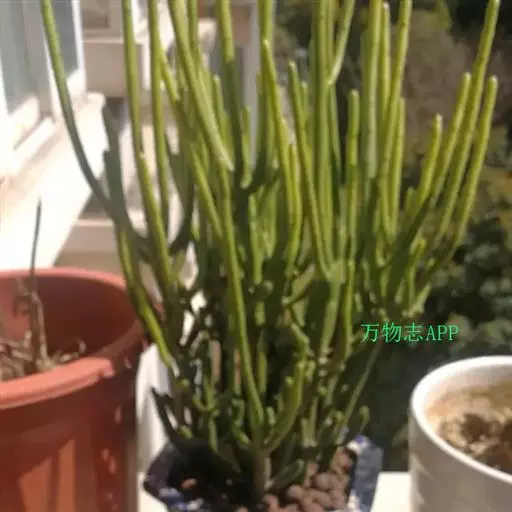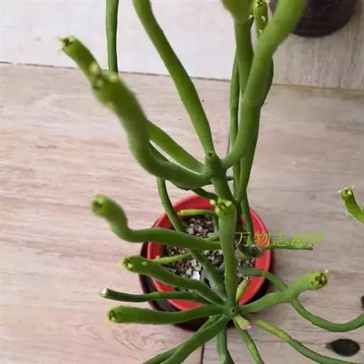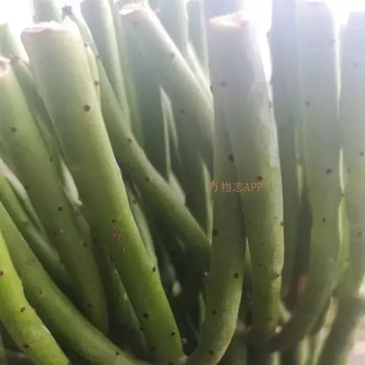 绿玉树是一种热带灌木或小乔木,可高达2~9米。叶细小互生,呈线形或退化为不明显的鳞片状,长约1厘米,宽约0.2厘米,早落以减少水分蒸发,故常呈无叶状态。
