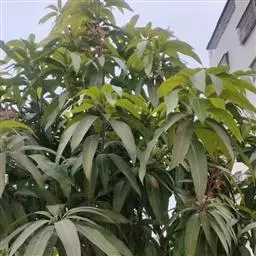 枝梢生长习性芒果枝梢呈蓬次式生长,芽由苞片包裹,生长时苞片先绽开,芽梢伸长,叶片开展,苞片随即脱落。中、下部叶片互生,叶距较大。一般苗期和幼树每年抽6-8次梢,幼龄结果树抽2-4次,成龄树1-2次。3-5月抽生的枝梢为春梢,6-8且为夏梢,9-11月为秋梢,12-2月为冬梢。在海南秋梢是主要结果母枝。但春、夏梢也可成为结果母枝,在条件良好的情况下,某些品种在12-1月抽生的冬梢也能开花结果.从芽萌动至枝梢停止生长、叶片老熟历时15-35天。夏、秋梢历时较短,冬梢较长。枝梢生长与根系生长交替进行。