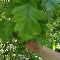 • 粉背黄栌叶卵圆形,较大,长3.5-10厘米,宽2.5-7.5厘米,无毛,但叶背显著被白粉;叶柄较长,…
