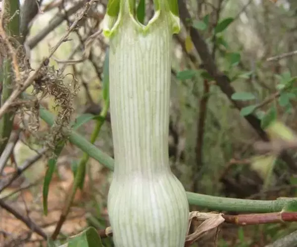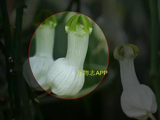 各附属器棒状或长圆锥状,长3.5-4.5厘米,先端钝,基部增粗至0.9-1.2厘米,具长5-10毫米的柄,向上渐狭,上部粗5-8毫米。花期4月。