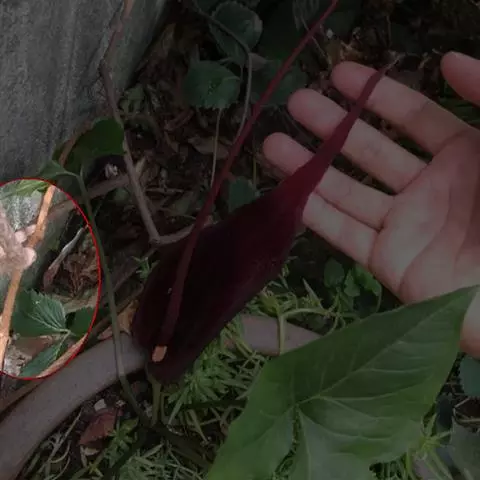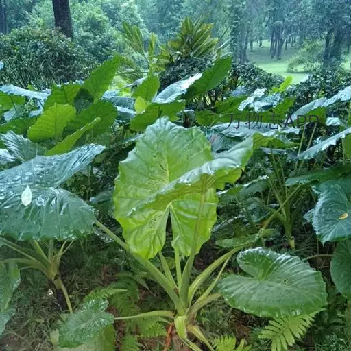 块根肉质,粗大,坚实,长圆球形,顶部不缩小,外皮及根肉均为黄棕色,下面生多数须根;基生叶及下部茎生叶长圆状卵形,长20-30厘米,有粗齿,稍具粉霜。