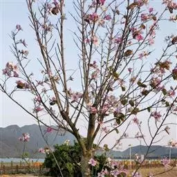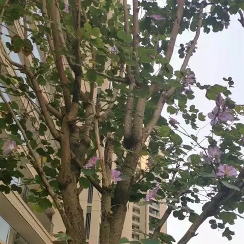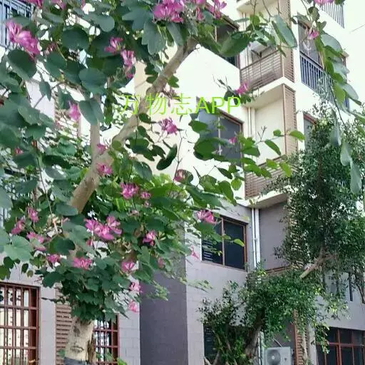 洋紫荆:落叶乔木;树皮暗褐色,近光滑;幼嫩部分常被灰色短柔毛;枝广展,硬而稍呈之字曲折,无毛。叶近…
