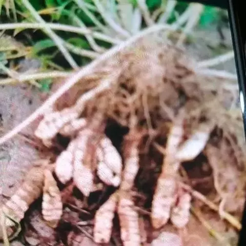 由立枯丝核菌引起的猝倒病症状:发病后有褐色的霉状物附着在病上。霉状物可以从盆土延伸到植株上。仔细观察可以看到这是由于植物根茎部长出的霉状物。立枯丝颜色常为红褐色,外形似蜘蛛网。