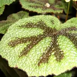 由漆斑菌引起的秋海棠叶斑病症状:病症一般出现在秋海棠叶片边缘、叶尖和破损叶片的叶脉上。坏死区域呈现黑褐色,然后是水渍状。诊断方法是下部的叶片经常会不规则形状的孢子群,中央呈黑色,但边缘为白色。