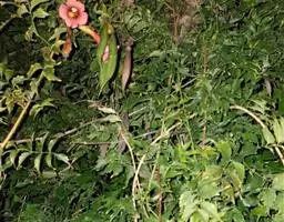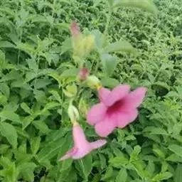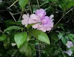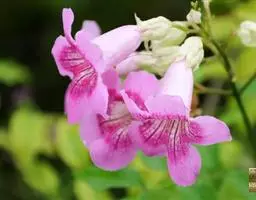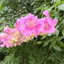 粉花凌霄 K.Schum.)是紫葳科魔盒凌霄属的落叶藤本植物。奇数羽状复叶对生,小叶全缘,…