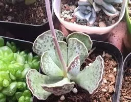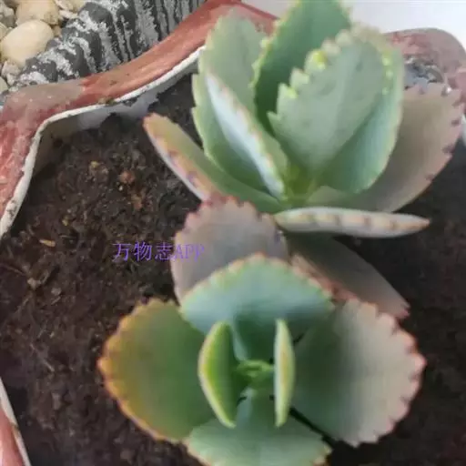 宽叶落地生根是最常见的多浆植物。其叶片肥厚多汁,边缘长出整齐美观的不定芽,形似一群小蝴蝶,飞落于地,立即扎根繁育子孙后代,颇有奇趣。用于盆栽,是窗台绿化的绿化的好材料,点缀书房和客室也具雅趣。
