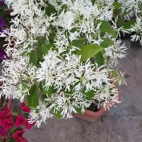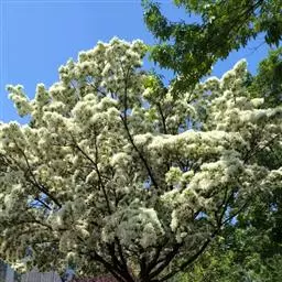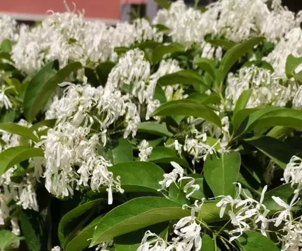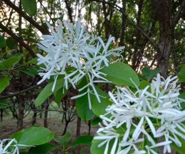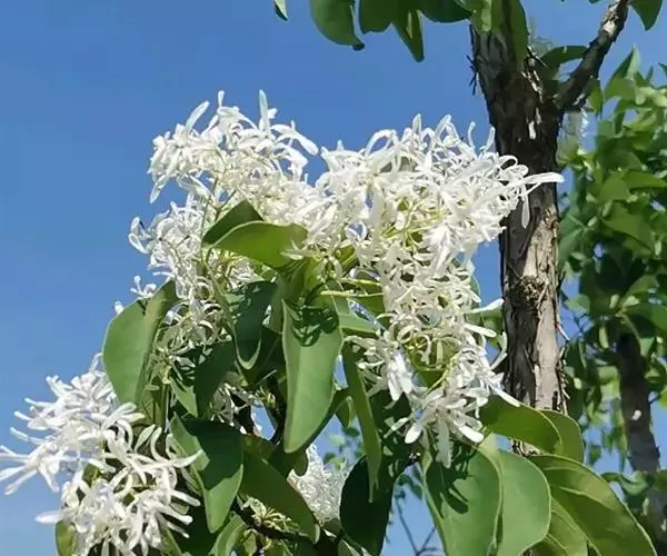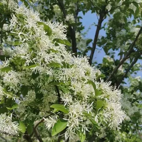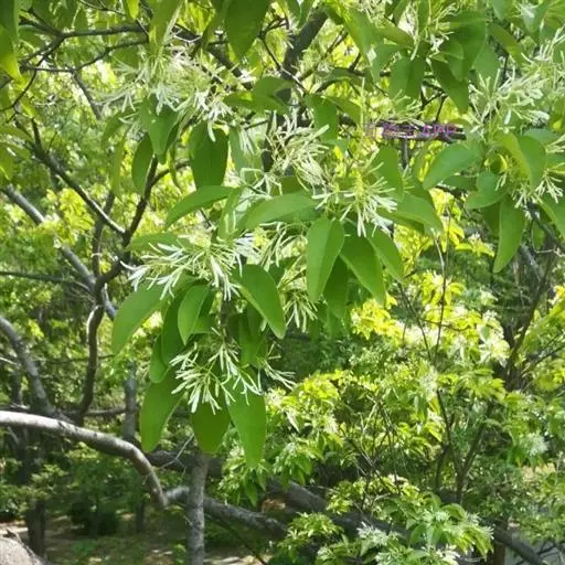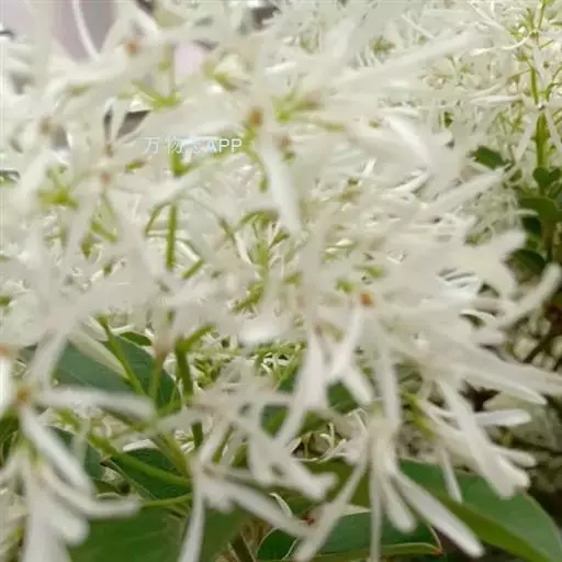 流苏树(学名:Chionanthus retusus Lindl.et Paxt.):是木犀科流苏树属的植物,是落叶灌木或小乔木,树形高大优美,枝叶茂盛,初夏满树白花,如覆霜盖雪,清丽宜人。秋季结果,核果椭圆形,蓝黑色。近看,流苏树的叶为单叶对生,叶片椭圆形或长圆形,全缘,近革质。雌雄异株,圆锥花序生于侧枝顶端;花冠白色,4深裂,裂片线状倒披针形,雄花雄蕊2,雌花柱头2裂。花期3-6月,果期6-11月。