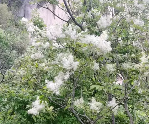 此树生于山岩石缝中,树下有流苏泉,泉水叮咚,甘冽清澈,终年不息。当地百姓说,这株流苏树的花香味与其它流苏树花香味不同,它散淤平喘之神效是其它流苏树所无法比拟的。因此,慕名前来治病、观赏者接连不断。