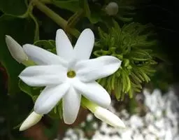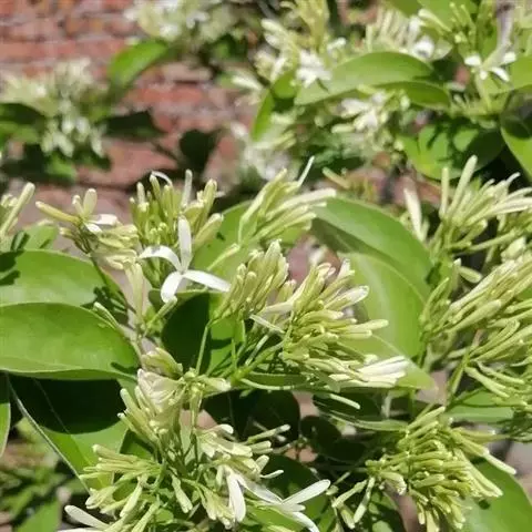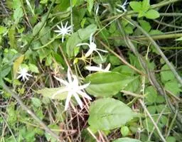 聚伞状圆锥花序,长3-12厘米,顶生于枝端,近无毛;苞片线形,长2-10毫米,疏被或密被柔毛,花长1.2-2.5厘米,单性而雌雄异株或为两性花;花梗长0.5-2厘米,纤细,无毛;花萼长1-3毫米,4深裂,裂片尖三角形或披针形,长0.5-2.5毫米;花冠白色,4深裂,裂片线状倒披针形,长(1-)1.5-2.5厘米,宽0.5-3.5毫米,花冠管短,长1.5-4毫米;雄蕊藏于管内或稍伸出,花丝长在0.5毫米之下,花药长卵形,长1.5-2毫米,药隔突出;子房卵形,长1.5-2毫米,柱头球形,稍2裂。