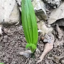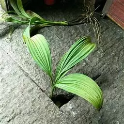 植株高60-100(-160)厘米;茎较纤细,基部稍粗,连叶鞘直径约1厘米,被棕褐色、有网眼的纤维网。叶折扇状,长矩圆状披针形至狭长矩圆形,长约30厘米,宽1-4(-8)厘米,两面无毛,先端长渐尖或渐尖,基部收狭为柄,叶柄长达10厘米。