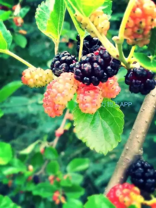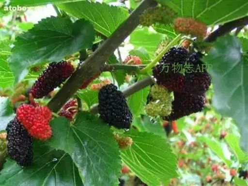桑椹嫩时色青,味酸,老熟时色紫黑,多汁,味甜。中医学认为桑椹补益肝肾,滋阴养血,息风,具有主治心悸失眠、头晕目眩、耳鸣、便秘盗汗、瘰疬、关节不利等病症。 桑葚-原植物