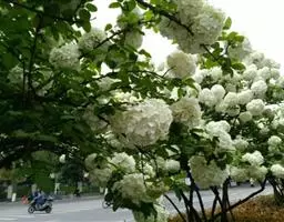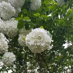 绣球荚蒾,五福花科荚蒾属落叶灌木,高可达3米,树冠球形;幼枝有垢屑状星状毛,老枝粗壮,具皮孔,…