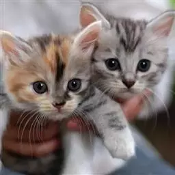 蓝猫:(毛发独特,质地似海豹皮,颜色应是中等深度的纯蓝色,泛出银色光泽,鼻子和掌垫也是蓝色,但幼猫除外,杏仁状眼镜应是非翠绿色。