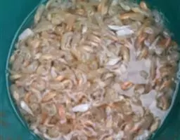 1 将虾去壳,去虾线,洗净,沥干水分放入碗内;