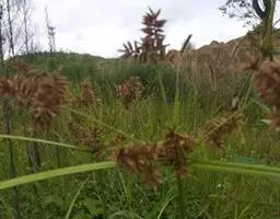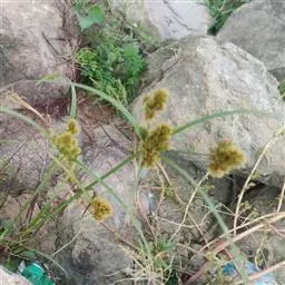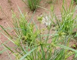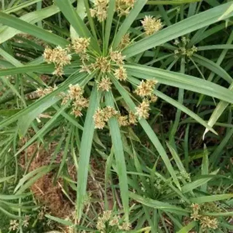 香附子(学名:Cyperus rotundus L.)是莎草科、莎草属植物。匍匐根状茎长,具椭圆形块茎。秆稍细弱,高15-95厘米,锐三稜形,平滑,基部呈块茎状。叶较多,短于秆,宽2-5毫米。叶状苞片2-3(-5) 枚,常长于花序,或有时短于花序;小穗斜展开,线形。小坚果长圆状倒卵形,具细点。花果期5-11月。