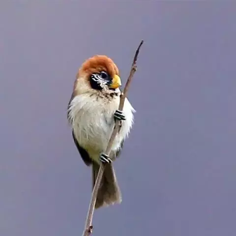 白眶鸦雀是莺科、鸦雀属小型鸟类,体长12-14厘米。嘴黄色、短而粗厚,头顶至后颈褐色沾棕具白色眼圈,…
