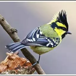 台湾黄山雀体长约13厘米。头顶至后颈黑色,有一长的黑色羽冠,羽冠末端和后颈中央白色。背苍绿色,…