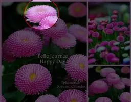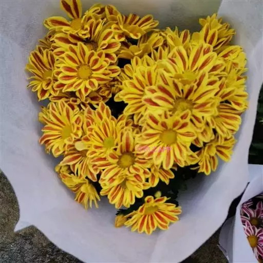 头状花序单生,具长总梗,花径7-12厘米,内含舌状花和管状花两种,舌状花单轮或1-3轮,花色丰富多彩,有白、黄、橙红等色,花瓣有光泽,部分具有条纹,花心处多有黑色、褐色或白色的眼斑;株型高矮不一,有丛生和蔓生两种;花期5-10月。