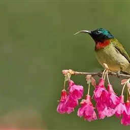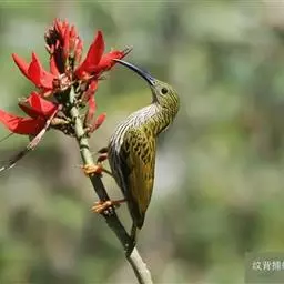 纹背捕蛛鸟:为太阳鸟科捕蛛鸟属的鸟类。是太阳鸟科中体型较大的一种,体重25-45克,…