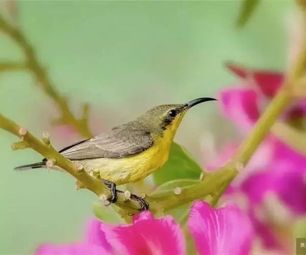 黄腹花蜜鸟是雀形目太阳鸟科花蜜鸟属鸟类。体型较小、喙略短而弯、腹部黄色。…