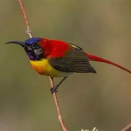 火尾太阳鸟为太阳鸟科太阳鸟属的鸟类。体长20厘米,色彩艳丽。雄鸟红色,具形长的艳猩红色中央尾羽。…