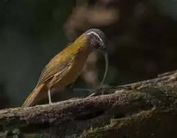 长嘴捕蛛鸟,小型鸟类,体长14-16厘米。嘴长而尖向下弯曲。上体橄榄绿色,眼先和短眉灰白色,…