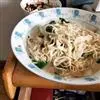 (1)、碗中依次放入煮熟的面、小白菜、豆芽、蒜末、香葱、油泼辣子;