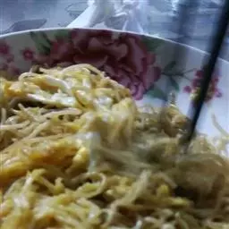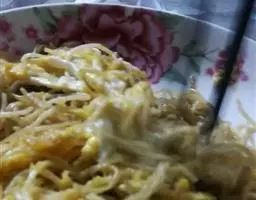 5.将油烧热,倒入盛好面的碗中,拌匀即可。