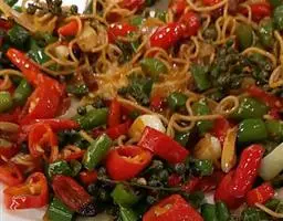 油泼面 面条是在周代“礼面”的基础上发展演变而来;秦汉时代称之为“汤饼”,属于“煮饼”类中的一种;隋唐时代叫“长命面”,意为下入锅内久煮不断;宋元时代又改称为“水滑面”。据元代韩奕所著《易牙遗意》记载:“水滑面:用十分白面揉搜成剂。一斤作十数块。放在水中,候其面性发得十分满足,逐块抽拽,下汤煮熟。抽拽得阔薄乃好。”清代朝廷大臣薛宝辰在其著作《素食说略》中记载更为详细:“其以水和面,入盐、碱、清油揉匀,复以湿布,俟其融和,扯为细条。煮之,名为桢面。”书中还指出:“作法以陕西朝邑、同州为最佳。”关于桢条面的形状,书中说道:“其薄等于韭菜,其细比于挂面,可以成三棱之形,可以成中空之形。