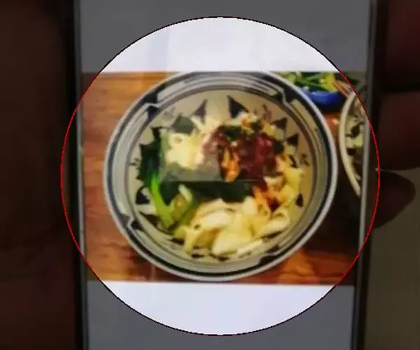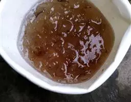 (7)、迅速向刚刚泼好的油泼辣子碗中倒入少许凉水,并搅拌均匀;