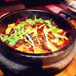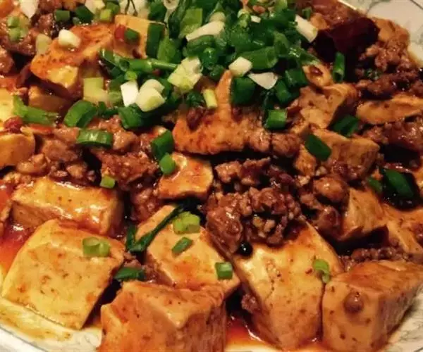 麻婆豆腐(拼音:má pó dòu fǔ;英文:sauteed tofu in hot and spicy sauce),是四川省传统名菜之一,属于川菜。主要原料为配料和豆腐,材料主要有豆腐、牛肉末(也可以用猪肉)、辣椒和花椒等。麻来自花椒,辣来自辣椒,这道菜突出了川菜“麻辣”的特点。其口味独特,口感顺滑。