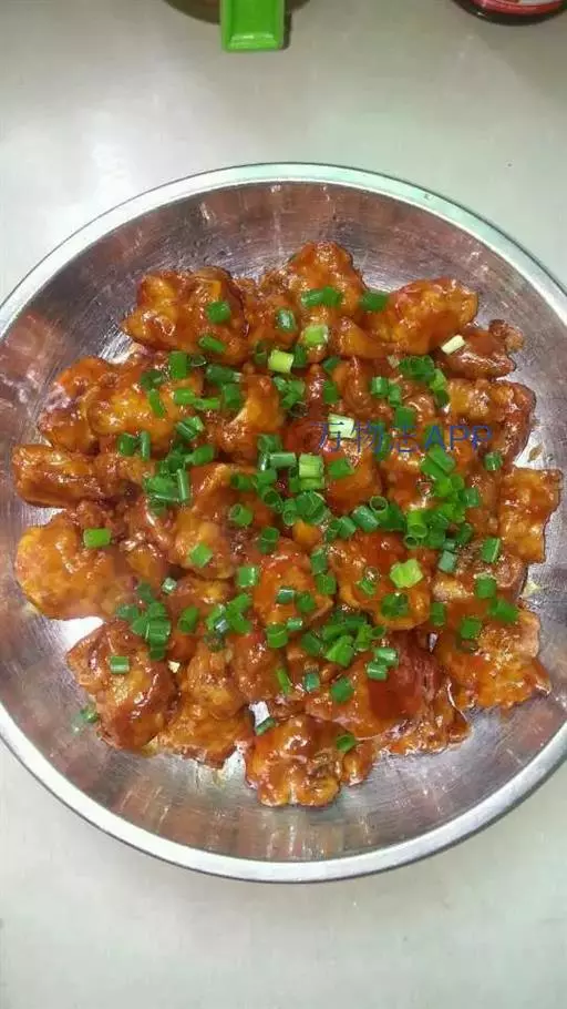 14.起锅装盘,放几片蒜苗点缀就可以开吃了。