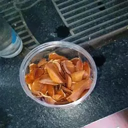 3.将熟花椒放到捣蒜器中捣成碎面备用;