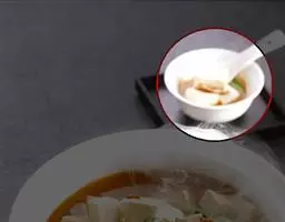 麻婆豆腐 1.豆腐切块后,用沸腾的淡盐水焯水,可以去除豆腐涩味,保持豆腐口感细嫩,且不易碎;如用开水煮过,会韧劲过大、口感不好;
