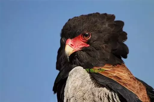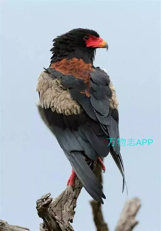 短尾雕(学名:Terathopius ecaudatus)是中等体型的鹰,短尾雕属下的唯一种,体长约70厘米,短尾巴长8-10厘米。头、颈和腹部有黑色金属光泽。背赤褐色。肩浅白至红褐色;脸红色裸露。脚强壮,橘红色。尾长仅10厘米(幼鸟尾较长)。翅上黑下白,长而尖,极宽。头部因有短而丰满的冠而显得大。