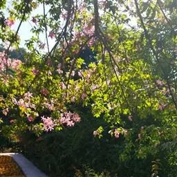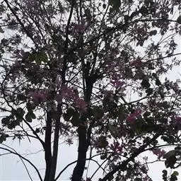 洋紫荆:落叶乔木;树皮暗褐色,近光滑;幼嫩部分常被灰色短柔毛;枝广展,硬而稍呈之字曲折,无毛。叶近…