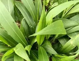 叶鞘长于其节间,肥厚、有小横脉;叶舌膜质,长约1.4厘米,顶端尖;叶片扁平宽大,长50-90厘米,宽15-30毫米。