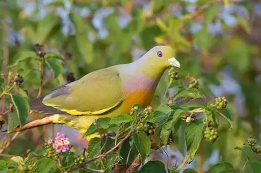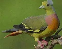 橙胸绿鸠(学名:Treron bicinctus)体长24-29厘米,体重135-200克。是中等体型的绿鸠。黑色的翼上具醒目的黄色纵纹和翼缘。脸前部绿色,颈背及上背灰色。雄鸟下体黄绿,上胸淡紫,下胸橘黄;雌鸟胸部绿色。尾灰色,外侧尾羽具黑色次端斑。