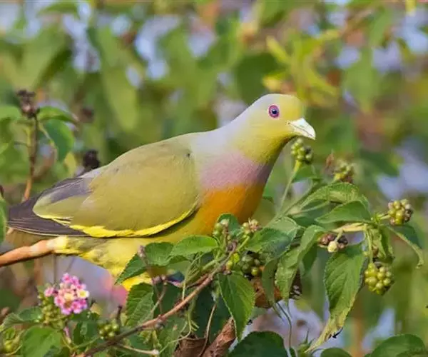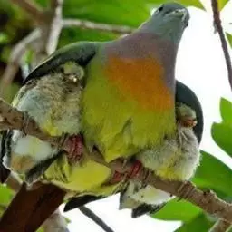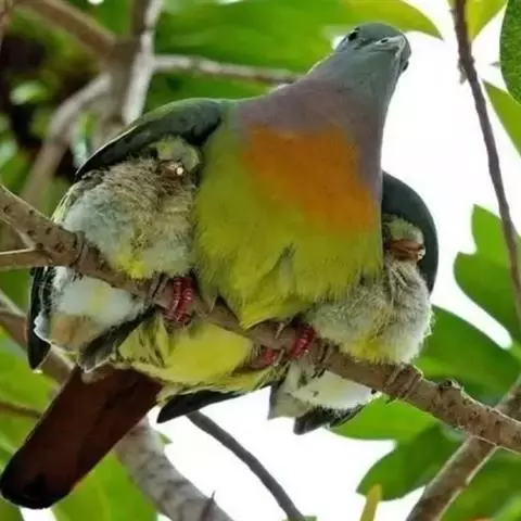 橙胸绿鸠主要为留鸟,通常单独或成5—6只的小群活动,有时也与其他鸟类混群活动。早晨和傍晚活动最为频繁。喜欢栖息于枯立的树顶枝上。叫声为美妙抑扬的口哨声。主要以榕树果实为食,也吃其他植物的果实与种子。