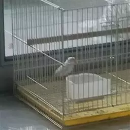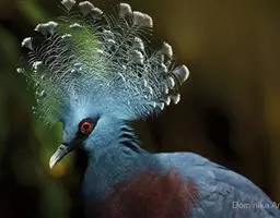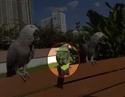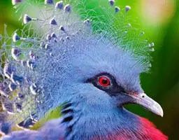 虹膜的外圈为粉红色至绯红色,内圈为蓝色,眼周的裸露皮肤紫蓝色。嘴呈淡蓝绿色,先端黄色。脚深红色,爪角褐色。