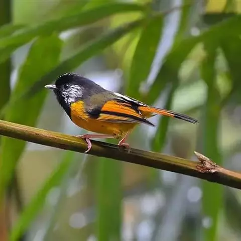 金胸雀鹛是莺科、雀鹛属小型鸟类,体长10-11厘米。头黑色,头顶中央有一道白色中央冠纹,…