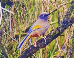 蓝翅噪鹛:噪鹛科、彩翼噪鹛属动物。中型鸟类,体长22-25厘米。上体棕橄榄褐色密被黑色鳞状斑,…